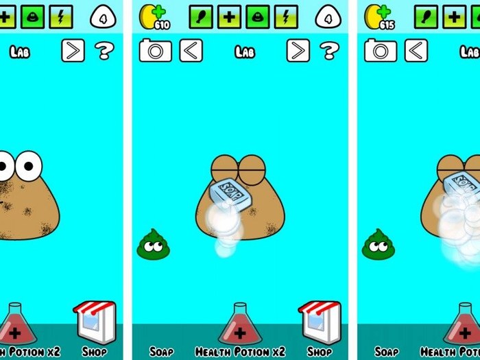 Se non sai da dove iniziare nel gioco, fallo prima. Nutrire il tuo Pou è essenziale nel gioco di ciò che puoi usare e metterlo a dormire. Scorri gli sfondi e vai nella vasca, vedrai le mini icone delle cose nel bagno, come la doccia o il sapone. Clicca prima sul sapone e vedi quante bolle ha e poi usa la doccia per lavare via il sapone. Questo rendeva il tuo Pou più felice, quindi forse ora è il momento di dargli da mangiare.